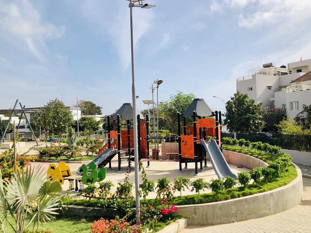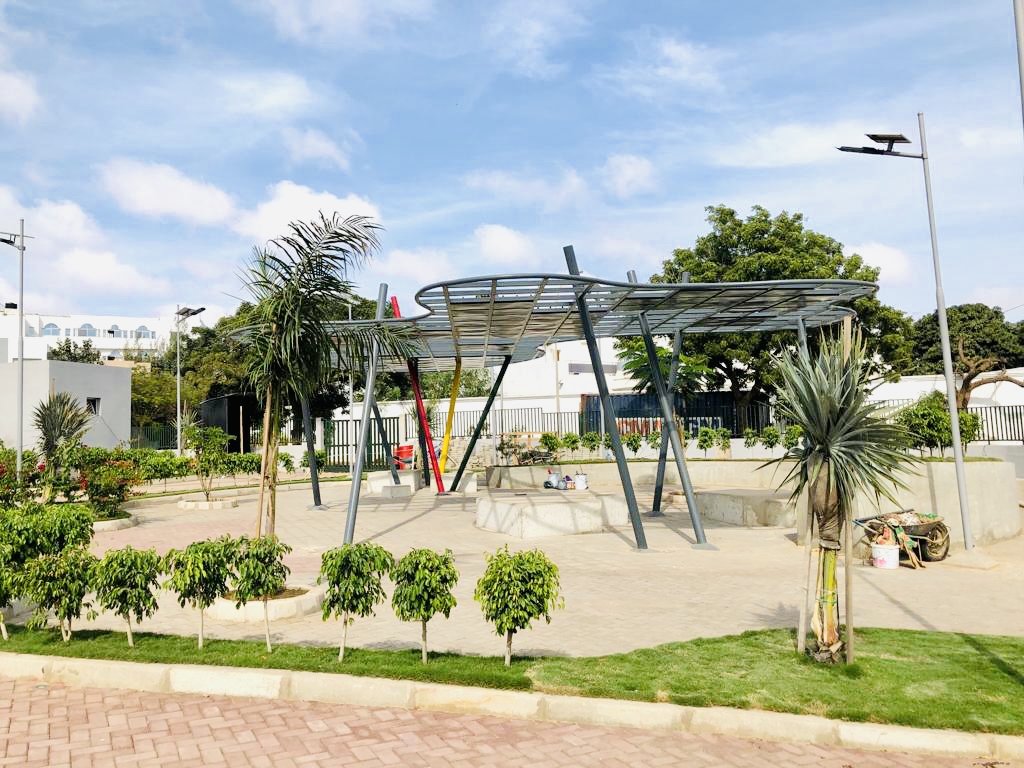 GREEN PARK transforms an underused plot in the Mermoz neighborhood into a landscaped urban park. The project integrates children's play areas, shaded walkways planted with local species, and community relaxation spaces.